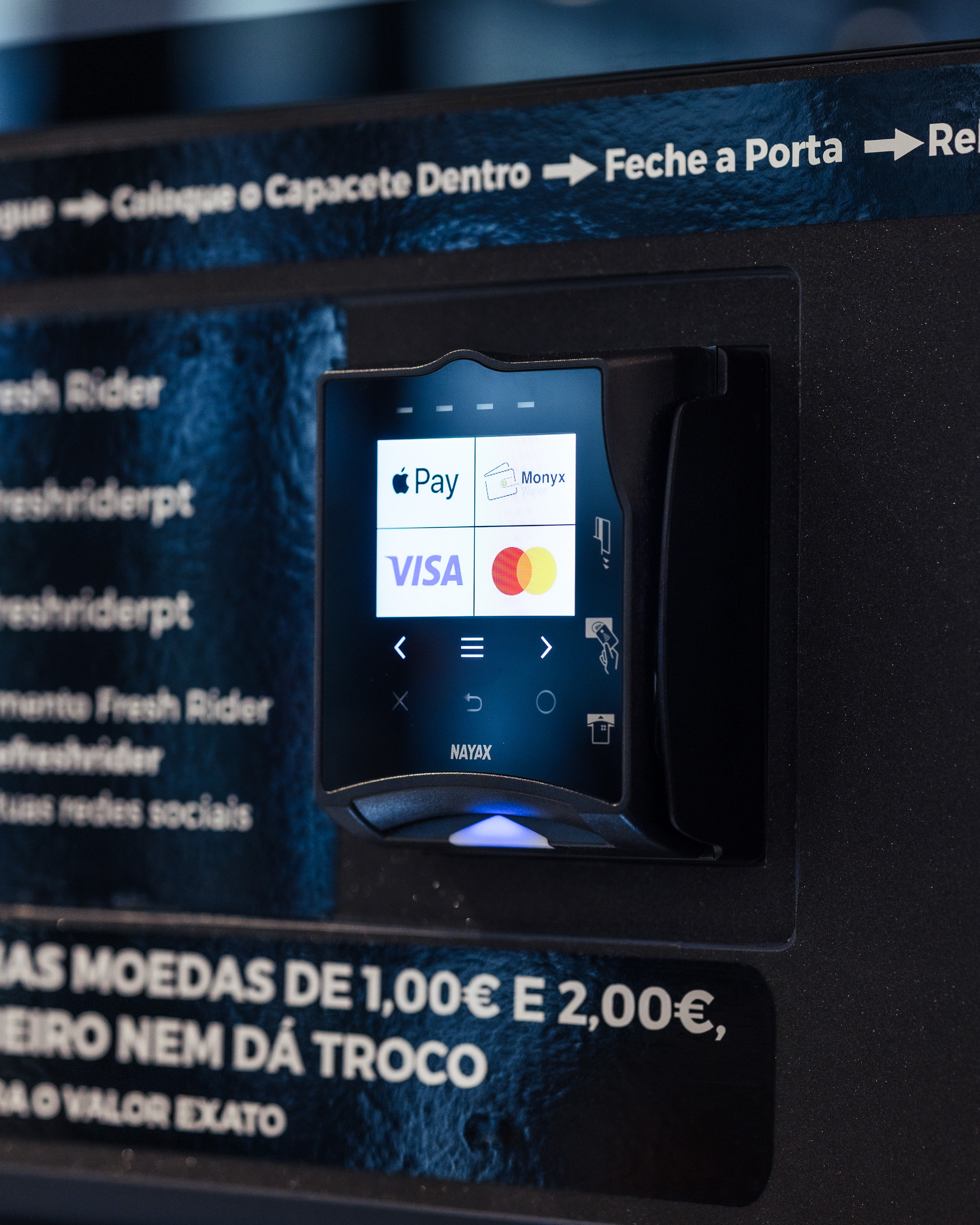 Meios de pagamento: moedas ou notas (à escolha), cartão e pagamento sem contacto (smartphone) ou QR Code
